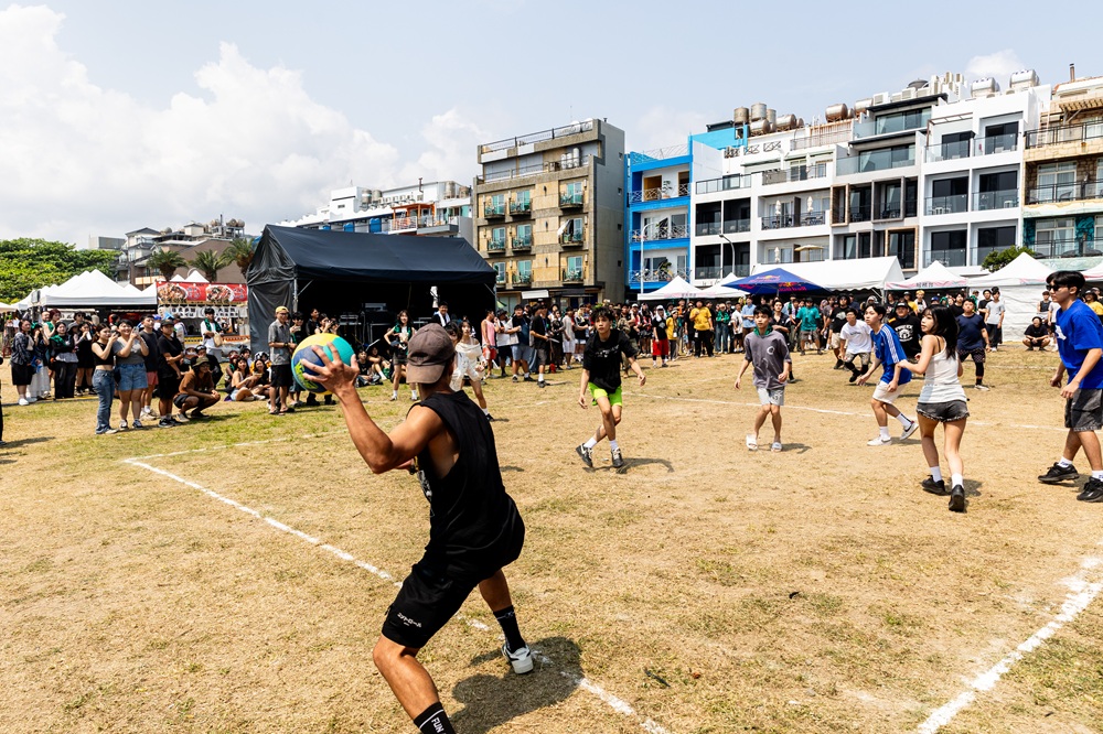 除了音樂演出外,下午大灣舞台區也展開熱血沸騰的「全明星躲避球賽」,今年共有16隊、128位好手在沙灘上激烈對抗,選手們在草地上來回奔跑、閃躲與投擲,攻防節奏快速,精彩場面不斷,引來現場觀眾陣陣歡呼與掌聲,場邊民眾也紛紛加油吶喊,現場洋溢著青春與熱血活力。