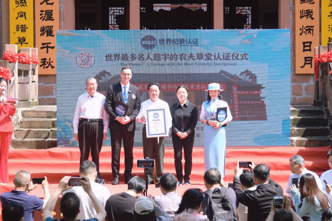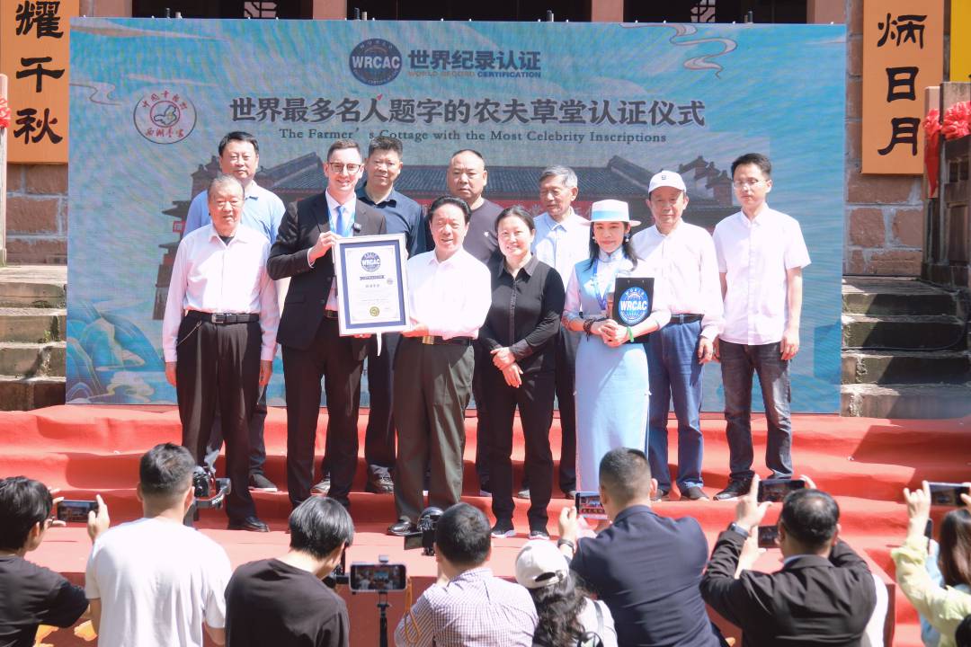 【記者 潘紅岩 南昌報導】文化連結世界,鄉愁鑄就紀錄。2026年4月19日,世界紀錄認證官余淑琴、馬克西姆(Maxim)正式宣佈:位於江西南昌進賢縣的「西湖李家」成功榮獲「全球最多名人題字的農夫草堂」世界紀錄。南昌市原市長李豆羅代表接受認證證書,見證這座鄉土建築躍升為國際文化殿堂。